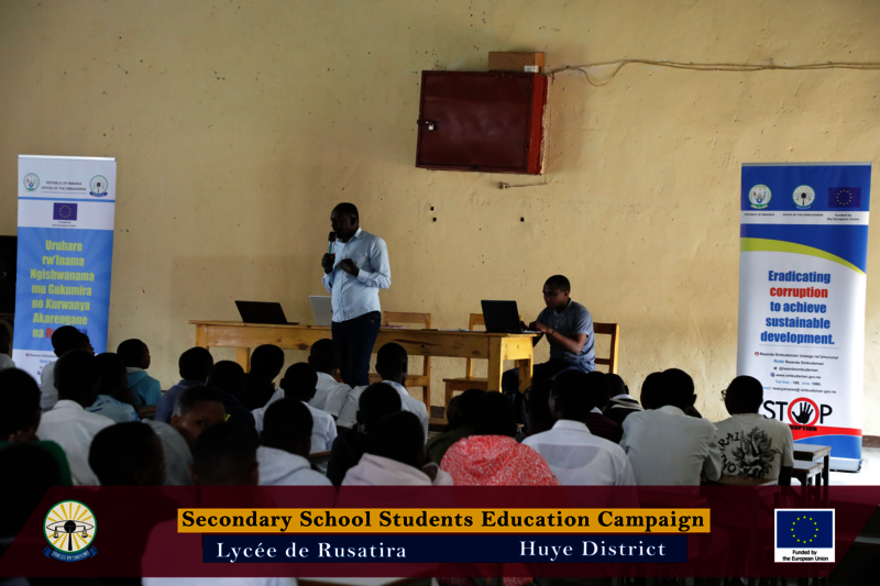 The Office of The Ombudsman is conducting the education campaign in Secondary schools of Huye District in the Southern Province. Students are provided with anti-corruption values for the future. They are explained corruption in details, It’s bad effects on the country, family and social life.