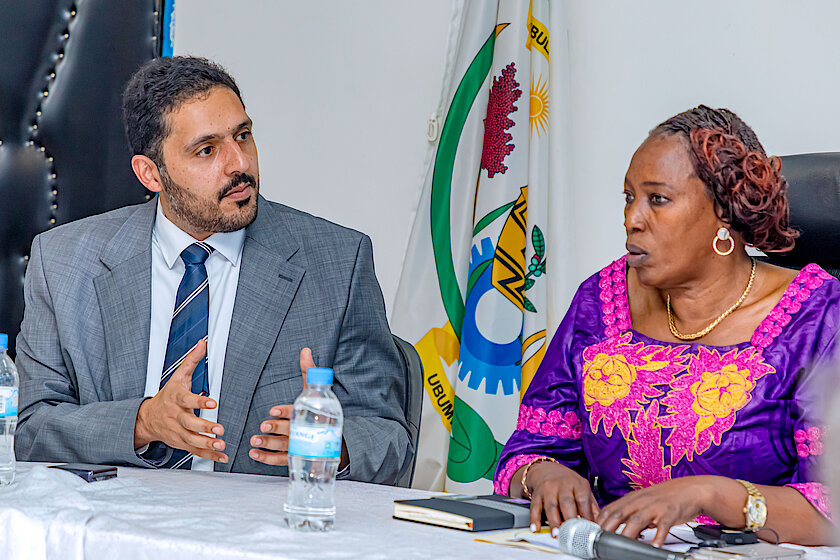 The Head of the Qatar delegation in a discussion with the Chief Ombudsman, Hon. NIRERE Madeleine