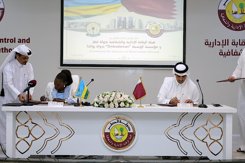 In Qatar, on Sunday, May 15,2022, the Office of the Ombudsman of Rwanda signed a Memorandum of Understanding (MoU) with the Administrative Control and Transparency Authority (ACTA) of Qatar in promoting integrity and transparency.
