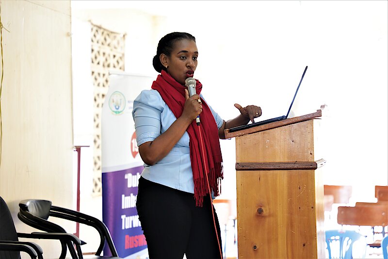 NIWEMFURA Vestine, the staff of the Office of The Ombudsman during the training session in Musanze District