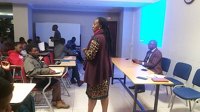 MUGENI Cecile, the staff of the Office of The Ombudsman during the training session at the University of Gitwe