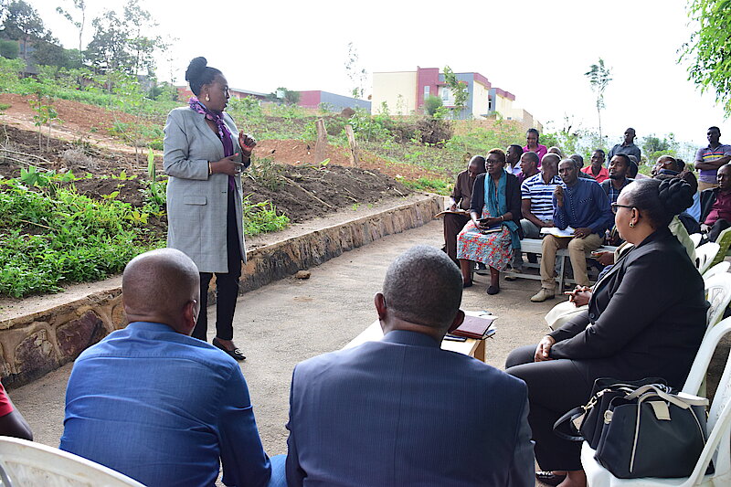 The Chief Ombudsman Hon. NIRERE Madeleine, Deputy Ombudsman, Madam Yankulije Odette, the District Executive Administrator of Gasabo district Madam Umwali Pauline and other security officials arrived at the cell of Kagugu where the complaint is based. The Chief Ombudsman led the mediation.