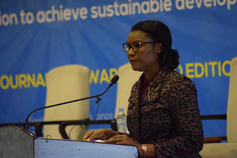 Honore UMUHOZA ahembwa nk'uwitwaye neza mu cyiciro cya Televisiyo