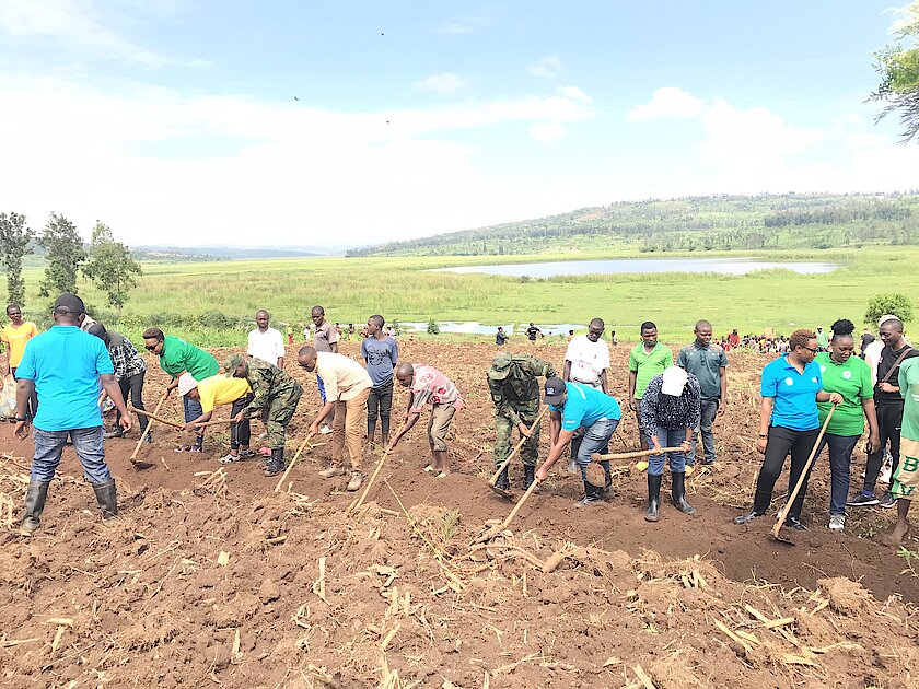 Abayobozi n'abakozi b'Urwego rw'Umuvunyi bifatanije n'abaturage bo mu Murenge wa Mareba mu Karere ka Bugesera mu muganda rusange