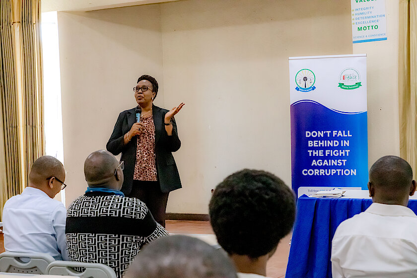 ANNE TWINOMUGISHA MUHAIRWE ,Intumwa y'Umuryango wa EAAACA ageza ijambo ku bitabiriye Umunsi Mpuzamahanga Wahariwe Kurwanya Ruswa