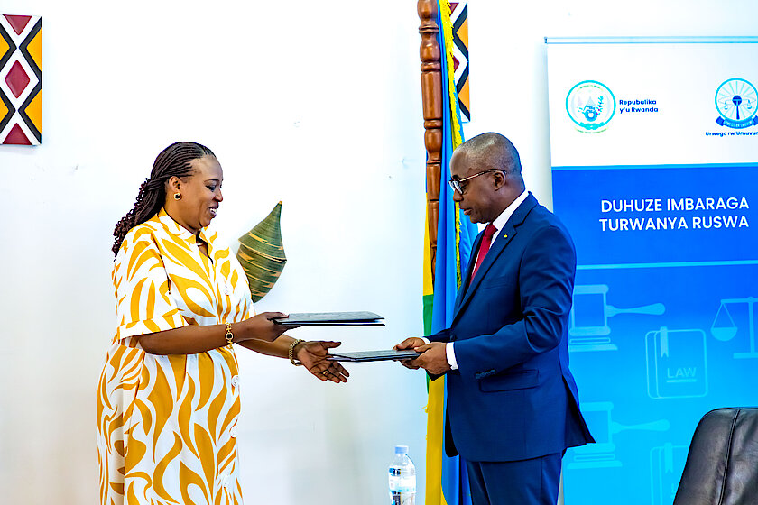 Ni amasezerano yashyizweho umukono n’Umuvunyi Mukuru, Nirere Madeleine mu gihe ku ruhande rwa Gabon yasinywe n’Umuyobozi wa Komosiyo y’Igihugu ishinzwe kurwanya Ruswa n’Iyezandonke, Nestor Mbou.